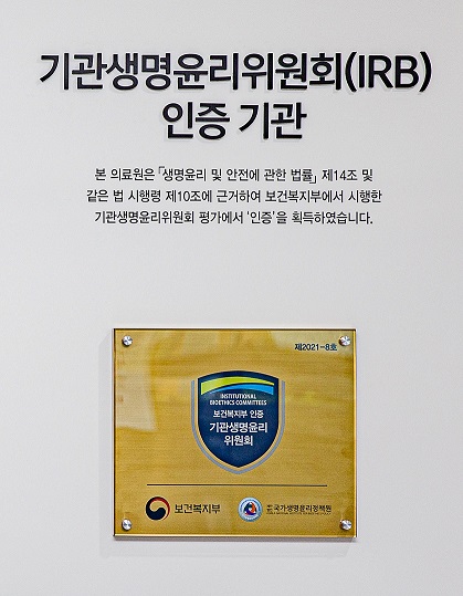 | 보건복지부 기관생명윤리위원회 평가·인증 현판식 | ||