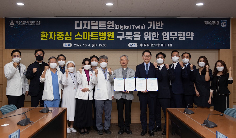 대구가톨릭대학교의료원은 필립스코리아(이하 ‘필립스’)와 <디지털트윈(Digital Twin) 기반 ‘환자 중심 스마트병원’ 구축을 위한 업무협약>을 체결했다.