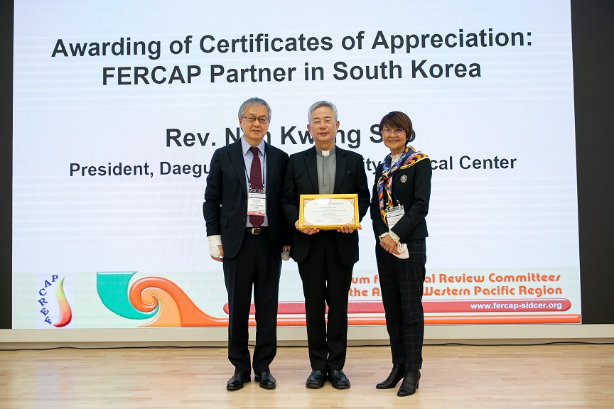이는 대구가톨릭대학교의료원이 10년 이상 FERCAP과의 관계를 유지하면서 임상연구 및 연구심의(IRB,HRPP)를 위한 올바른 인식의 정립과 확대, 교육을 위해 노력해온 그간의 공로에 대한 깊은 감사로 볼 수 있다.