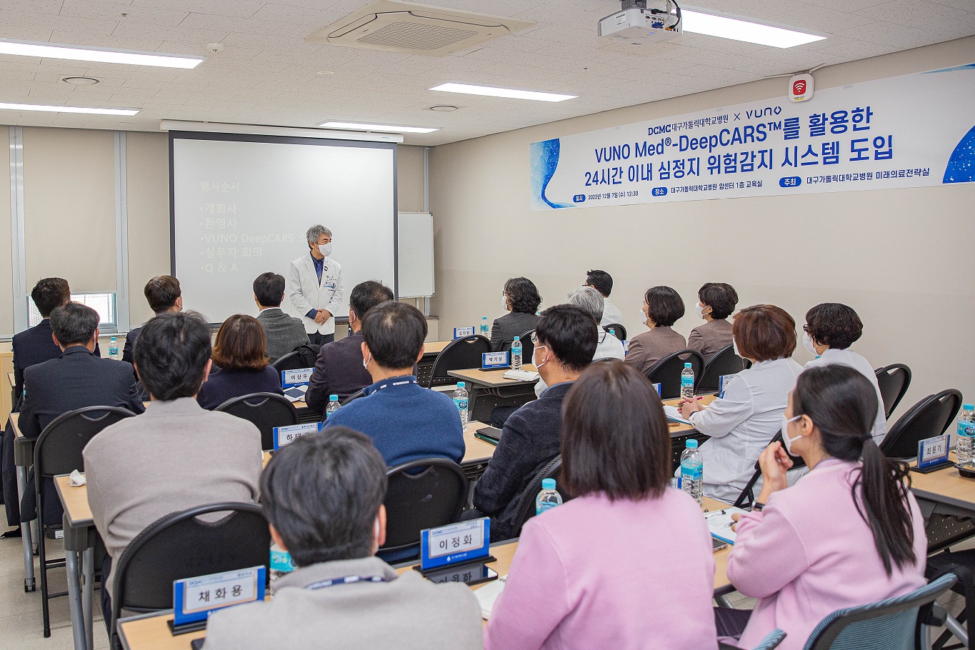 대구가톨릭대학대학교병원은 앞서 DeepCARS 시스템 데모 버전을 운영하며 지난 9월과 11월 두 차례에 걸쳐 세미나를 개최하였고 입원환자의 심정지 위험도에 대한 정확도 평가를 완료하였다.